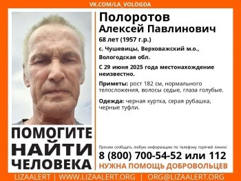 Пенсионер 1957 года рождения может находиться как в родном Верховажском округе, так и за его пределами. Любые сведения о его координатах авторы объявления просят сообщать по телефону горячей линии: 8 800 700 54 52 (бесплатно) или в полицию, по номеру 112.
