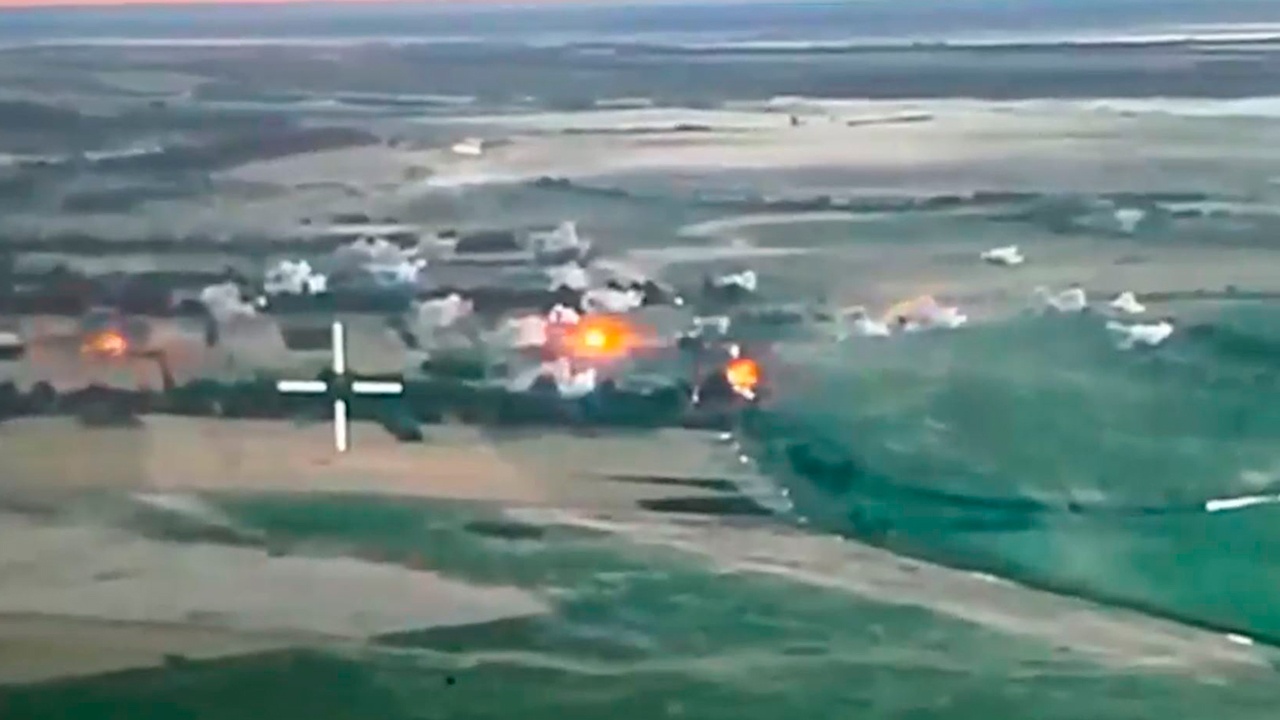 Расчеты реактивных систем залпового огня провели интенсивную работу в районе населенного пункта Карла Маркса. На кадрах объективного контроля видно, как прилеты охватывают значительные зоны на территории, где обороняется противник.