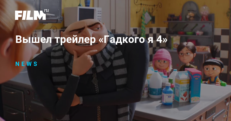 Анимационная франшиза «Гадкий я» возвращается: в Сети стал доступен дебютный трейлер четвёртой части. Релиз мультфильма в зарубежном прокате состоится 3 июля.