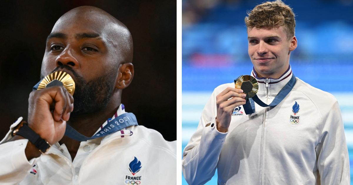 À l’aube des Jeux olympiques 2024, le nageur Léon Marchand arrivait à Paris avec de grandes ambitions, mais un palmarès olympien nul et vierge. Le nageur français avait bien participé aux JO de Tokyo en 2021 à 19 ans, mais il n’avait pas fait mieux qu’une sixième place sur le 400 m 4 nages. Une semaine plus tard, il s’est paré d’or à quatre reprises. Le judoka Teddy Riner débarquait, lui, avec un palmarès déjà bien fourni, qu’il a encore épaissi vendredi 2 août, en glanant son troisième titre olympique en individuel, son quatrième en comptant la médaille d’or par équipe à Tokyo.