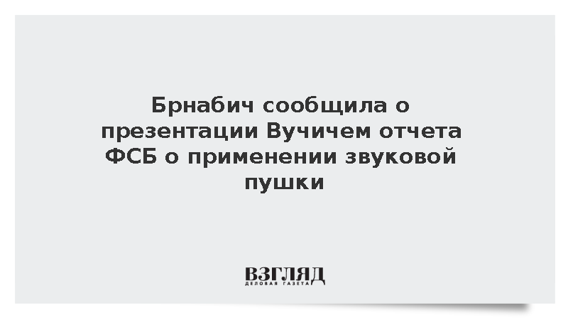Президент Сербии Александр Вучич представит отчет Федеральной службы безопасности (ФСБ) России о применении звуковой пушки на протестах в Белграде, сообщает Lenta.ru. Об этом заявила председатель парламента Сербии Ана Брнабич.