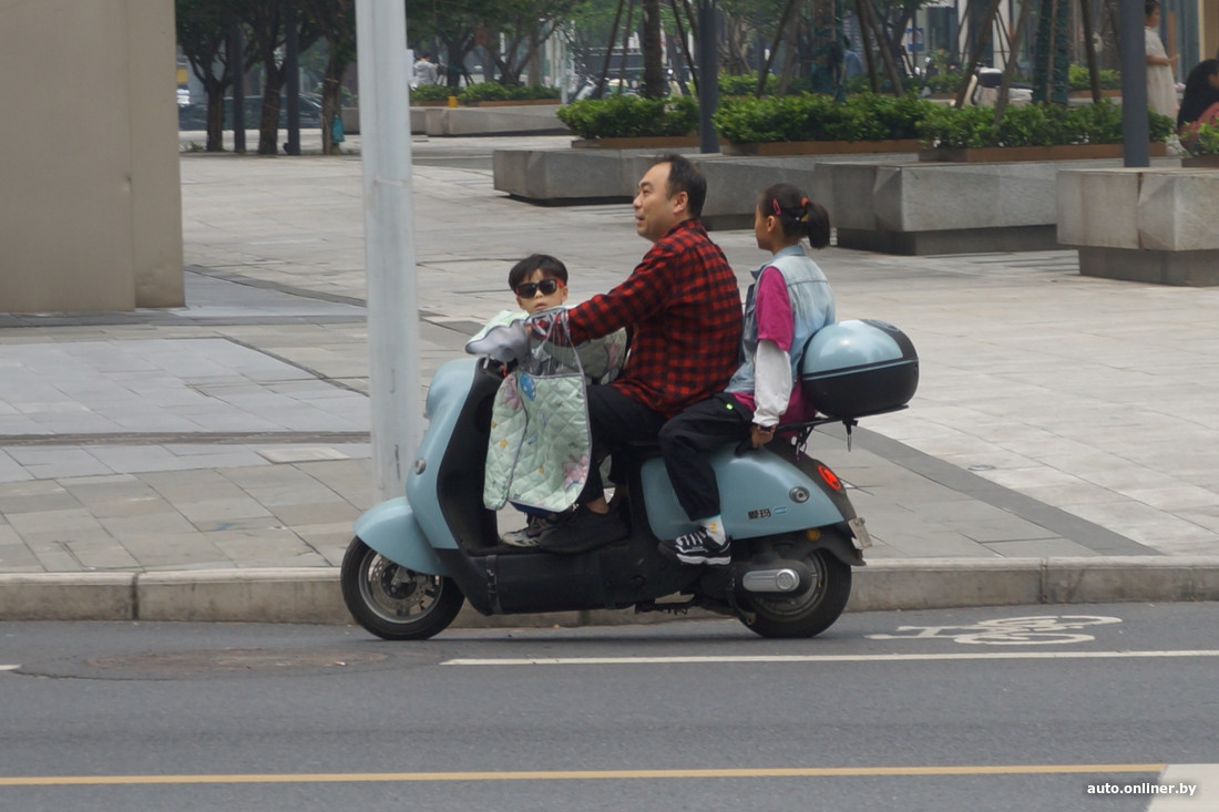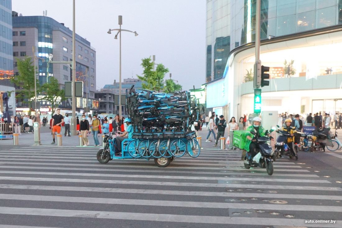 Кстати, при таком огромном количестве скутеров пресловутые электросамокаты на дорогах и улицах мы увидели лишь несколько раз, да и то только в Пекине. Моноколес или сегвеев вообще нет, электрические велосипеды — редкость. Видимо, все дело в том, что для повседневного использования удобнее все же скутеры. Ну а для «релакса» используются шеринговые велосипеды.