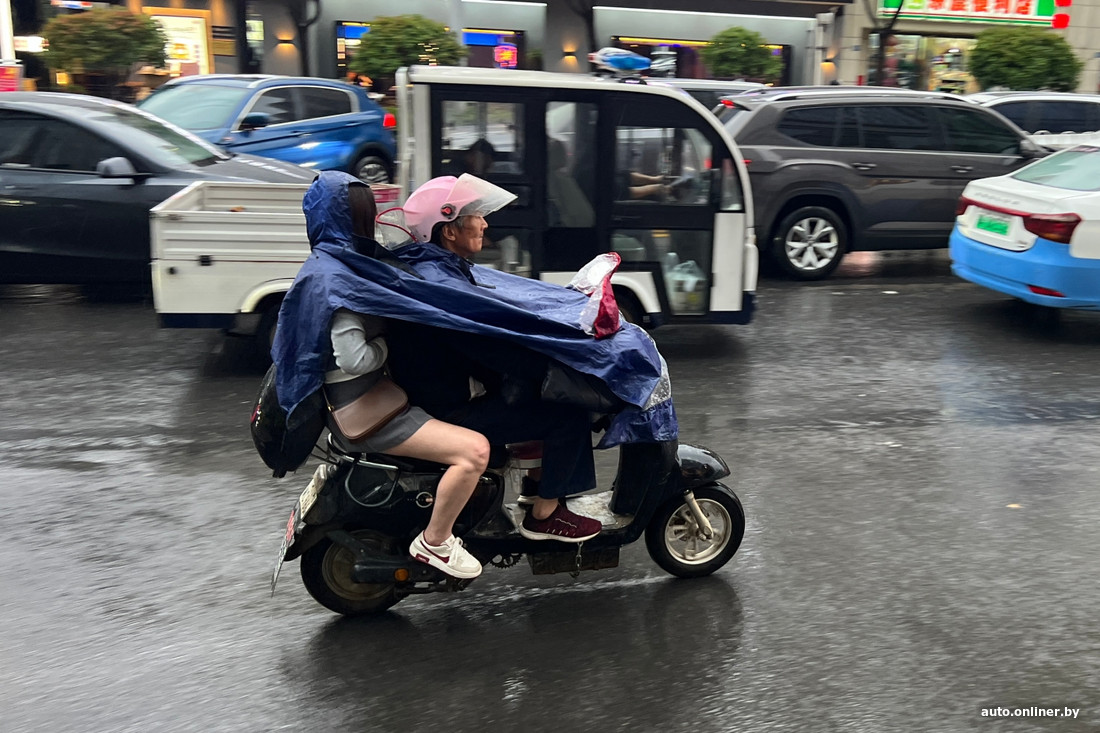 Кажется, любой европейский водитель в течение пяти минут посадил бы на капот пару-тройку скутеристов, которые слегка не рассчитали траекторию и скорость. Но китайские водители как-то умудряются разъезжаться. То, что мы бы посчитали грубейшим нарушением ПДД, на местных дорогах, похоже, является «рабочими моментами».