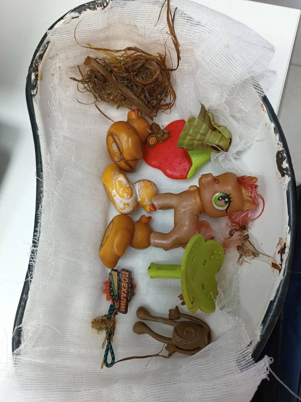 Самоед наелся игрушек в Нижнем Новгороде: на рентгене внутри него обнаружили целый набор с уточками и лошадкой.