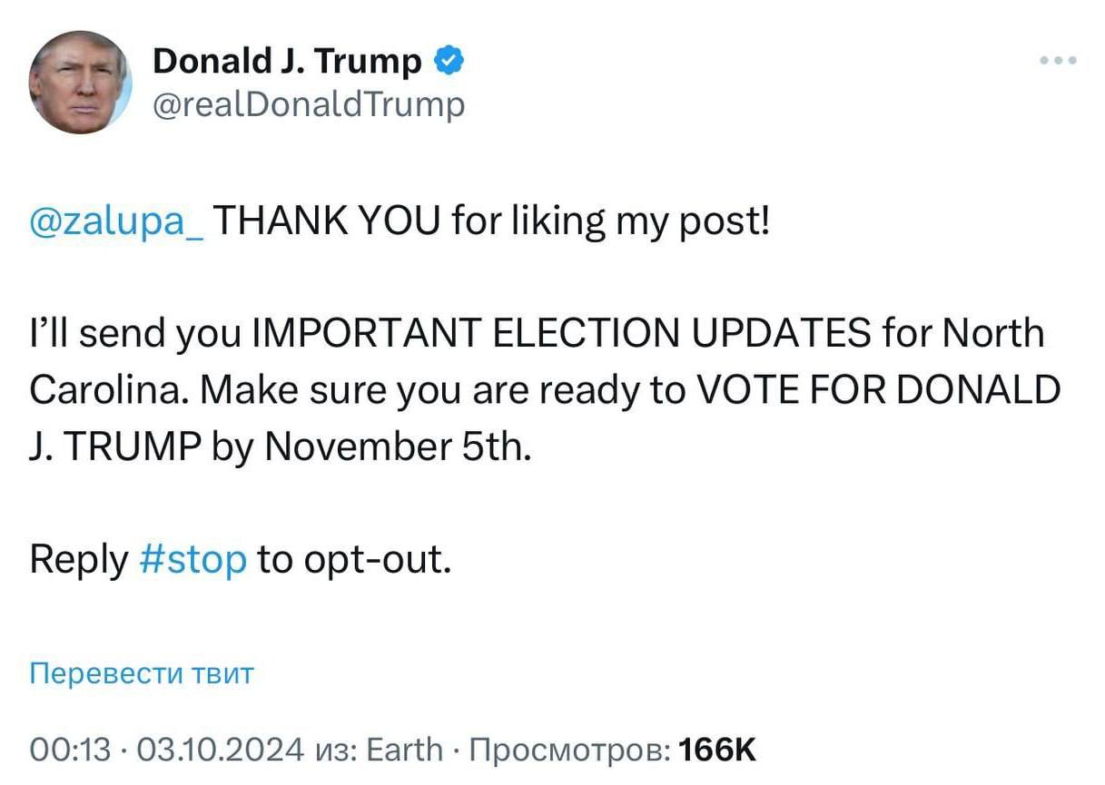 🇺🇸✍🏻«Спасибо за то, что лайкнул мой пост, zalupa», — Трамп создал новый мем