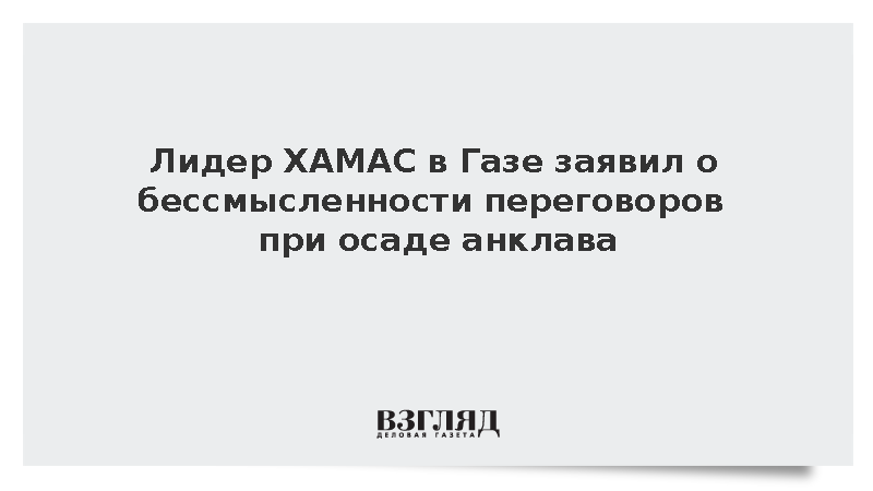 Лидер палестинского движения ХАМАС в секторе Газа Халиль аль-Хайя назвал бессмысленными дальнейшие переговоры с Израилем о прекращении огня в сложившихся условиях осады.