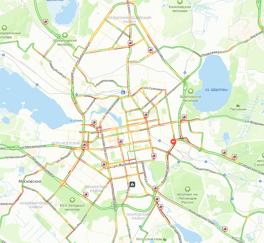Судя по картам, за утро в городе произошло более десятка аварий, а пробки достигли семи баллов.