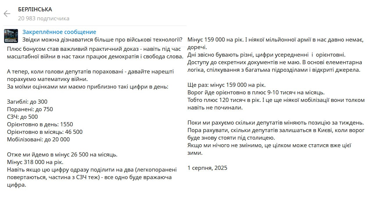 Информационная война: Армия Зеленского тает - арифметика от волонтера ВСУ Марии Берлинской...