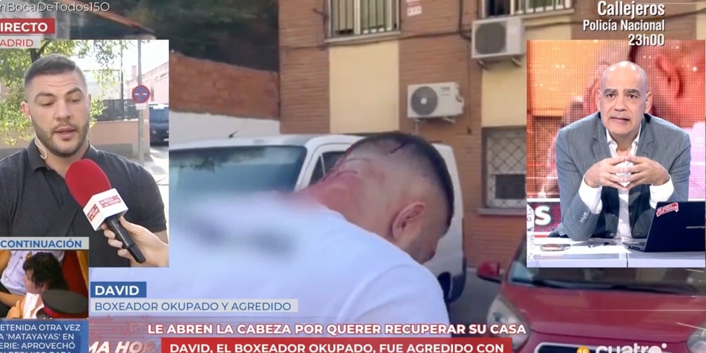 «Un violento enfrentamiento y con una cabeza abierta», introducía Nacho Abad a la audiencia de 'En boca de todos'. «Le reventaron la cabeza», añadía el presentador sobre la batalla campal que se había vivido en el nuevo intento de David por recuperar su casa okupada.