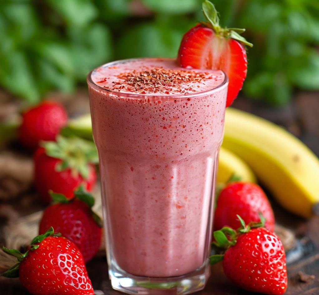 3. Дать постоять 10 минут, чтобы овсяные хлопья разбухли. Украсить стаканы со смузи можно свежей клубникой.
