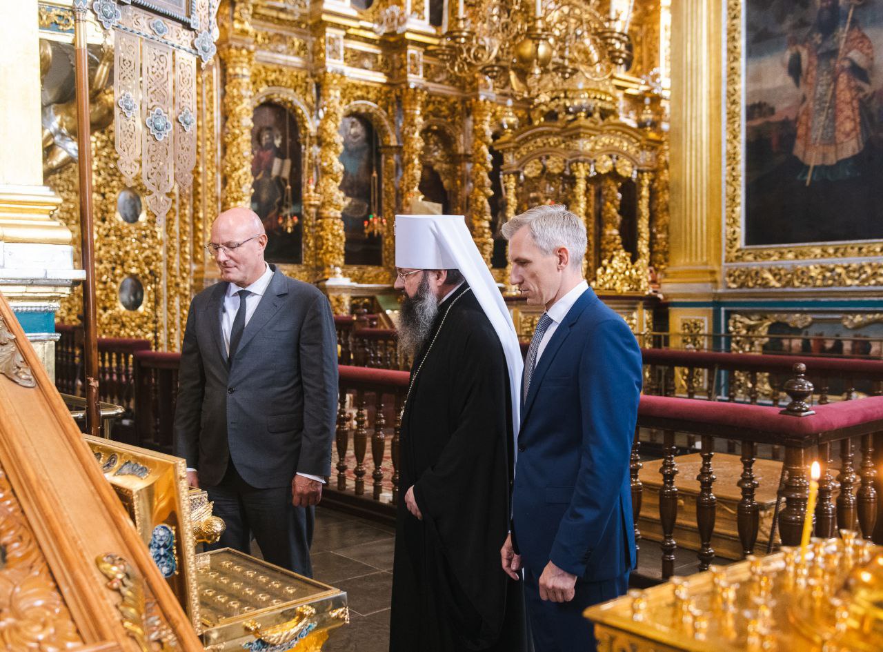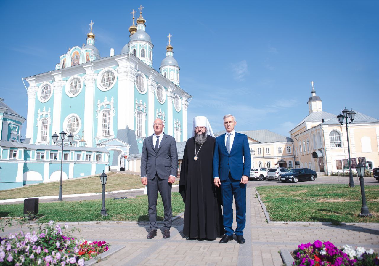Дмитрий Чернышенко и Василий Анохин также обсудили организацию духовно-просветительской работы в регионе и развитие объекта культурного наследия, одного из символов Смоленска – Успенского кафедрального собора.
