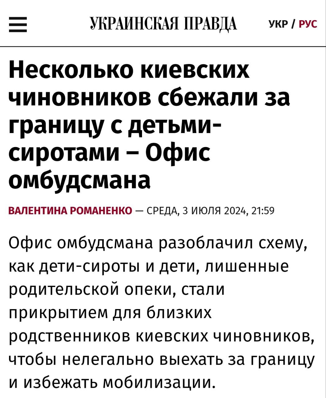 Украинские чиновники добивались эвакуации сирот из Киева в западные страны, чтобы получить возможность их сопровождать и сбежать за границу от мобилизации.