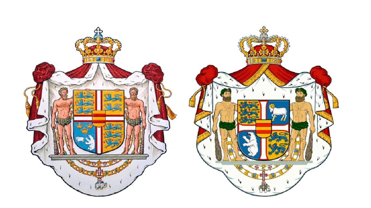 На сайте королевской династии Дании опубликовали изображения нового королевского герба. На изображениях видно, что символы Гренландии и Фарерских островов - белого медведя и барана, которые раньше находились в одном поле, получили по индивидуальному полю, а их изображения стали более отчетливыми.