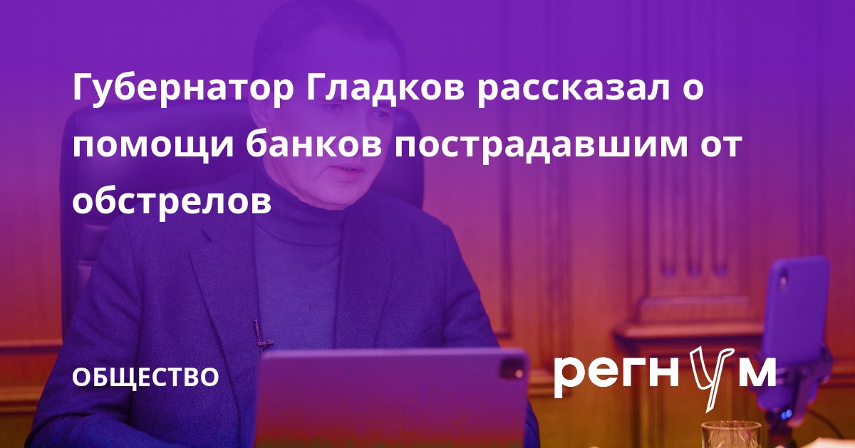 Губернатор Гладков рассказал о помощи банков пострадавшим от обстрелов