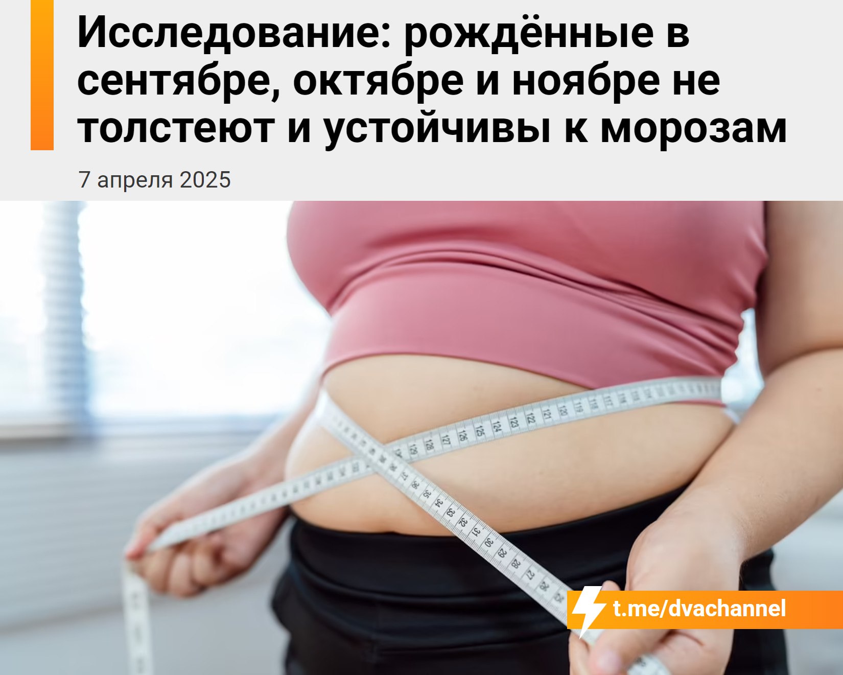 У тех, кто был зачат зимой, активнее работает бурый жир — он сжигает калории и вырабатывает тепло. Поэтому они реже набирают лишний вес и легче переносят морозы.