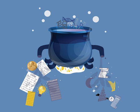 Рисунок 1. Метафора современного подхода к исследованиям как к комбинации разных наук и подходов: биология, химия, физика и медицина замешиваются на высокопроизводительных экспериментальных методах и приправляются хитроумными вычислительными моделями.