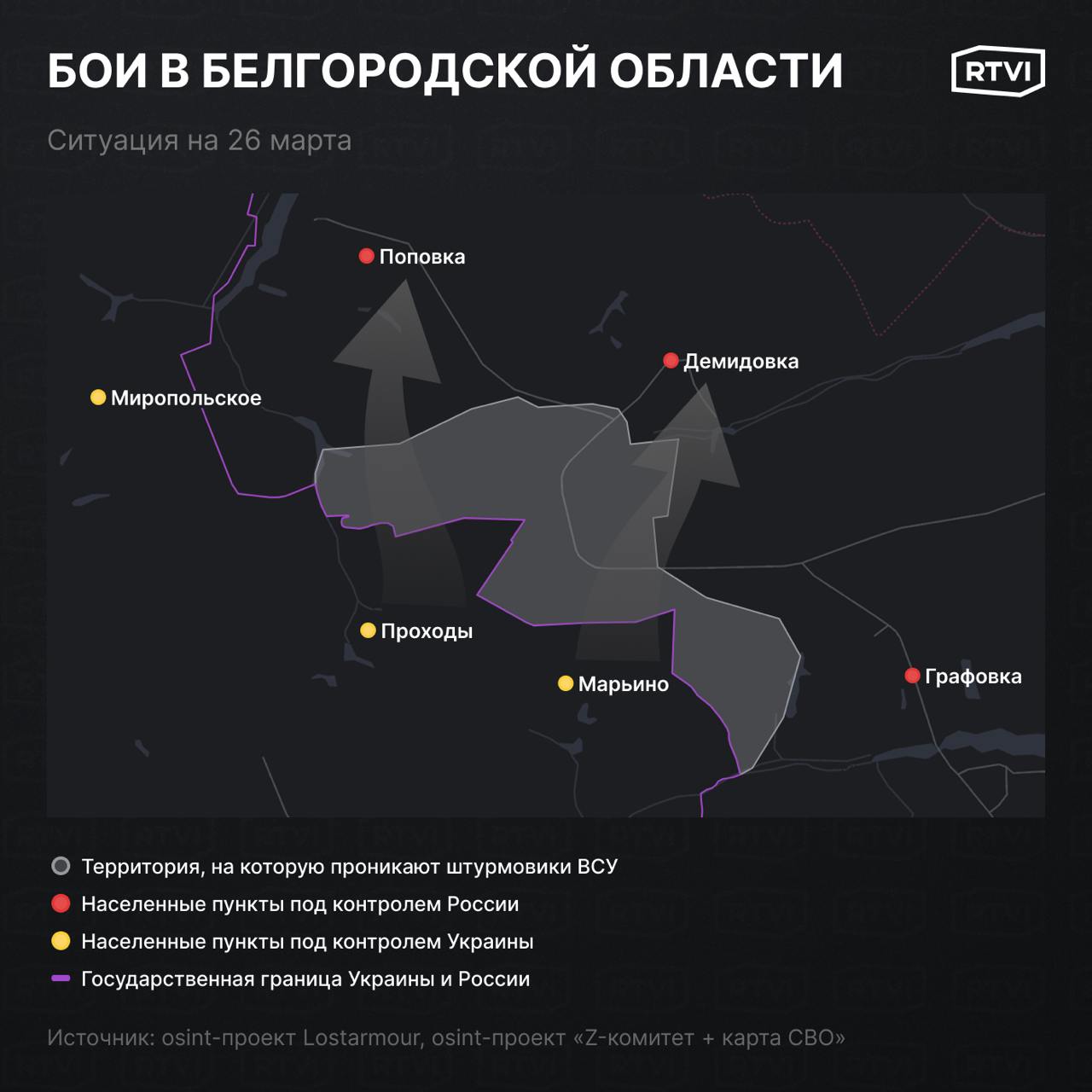 💬 «ВСУ после занятия части Демидовки в Краснояружском районе решили атаковать соседнюю Поповку. Элитные силы ССО ВСУ под прикрытием огня артиллерии и БПЛА прорвались в село. На их пути встали воины из резерва погрануправления ФСБ России по Приморскому краю и несколько спецназовцев. Украинским ССОшникам удалось окружить опорник российских пограничников и начать его штурм, забрасывая гранатами. В ходе многочасового боя помощь нашим оказывали операторы ударных дронов и артиллеристы... Почти все пограничники были ранены, часть — тяжело. В итоге наши отразили все атаки. Враг понес потери и отступил из села в посадки у границы», — описывает подробности вчерашнего боя телеграм-канал «Военкоры Русской весны».