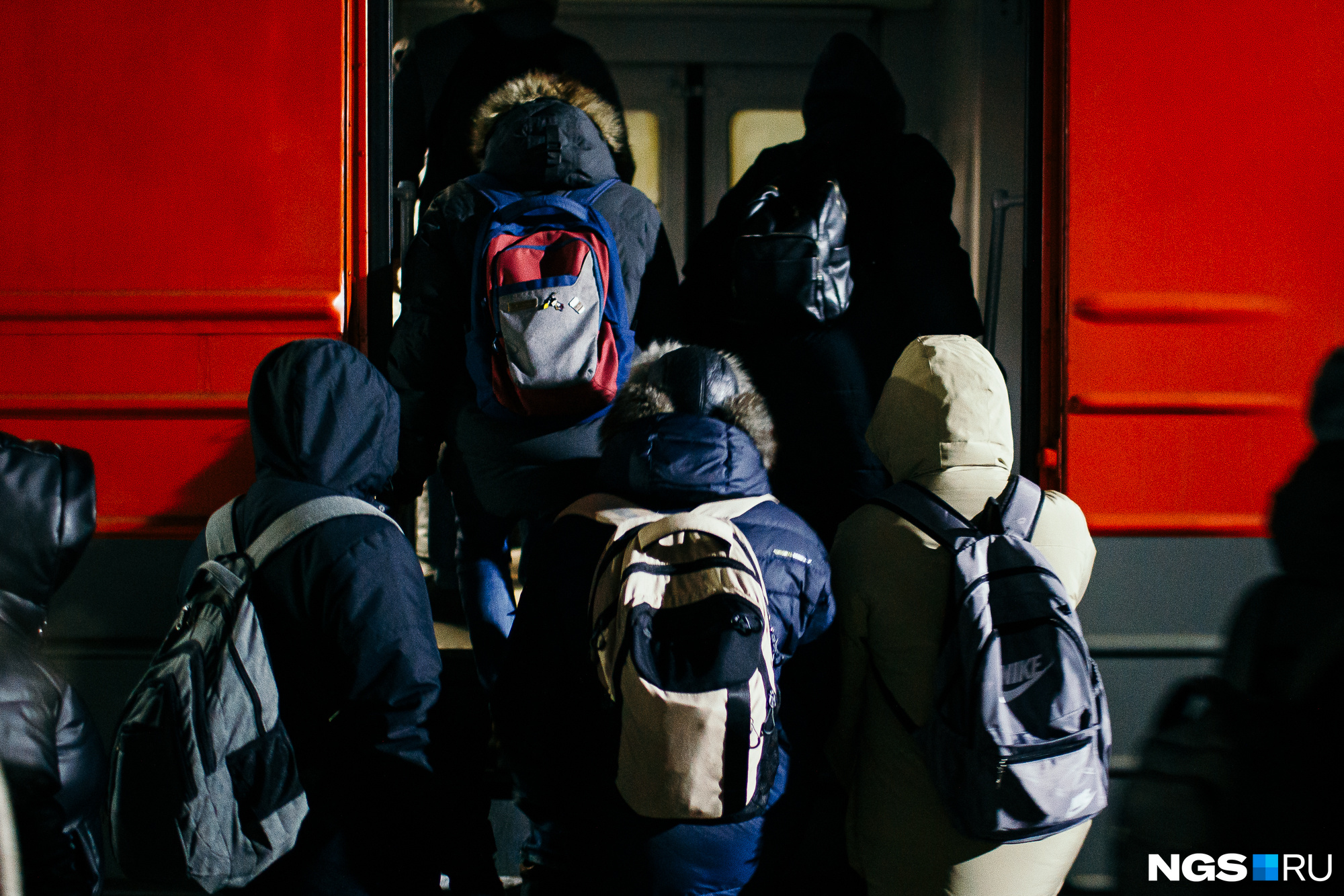 Что ж, часть пробок можно объехать на электричке даже в январе. Тем более, по утрам их в южном направлении идет из Новосибирска целых две: в 7:02 до Черепанова, в 7:52 — до Бердска (время отправления указано со станции Речной вокзал). Первая явно доставит студентов в Городок намного раньше необходимого времени. Вторая, наоборот, приходит на Сеятель практически впритык, в 8:25. Но экспресс до университета стыкуется именно с ней, и мы решаем рискнуть.