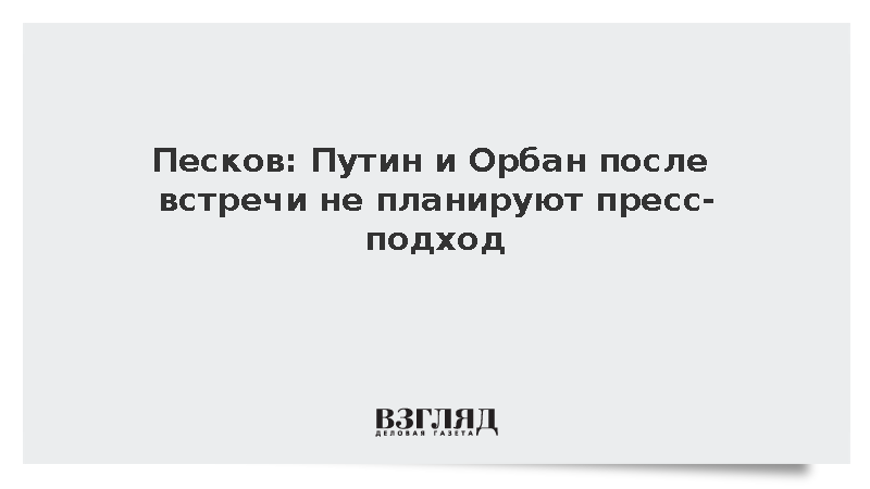 По словам Пескова, Путин встретится с Орбаном в Кремле после 13.00, передает ТАСС.