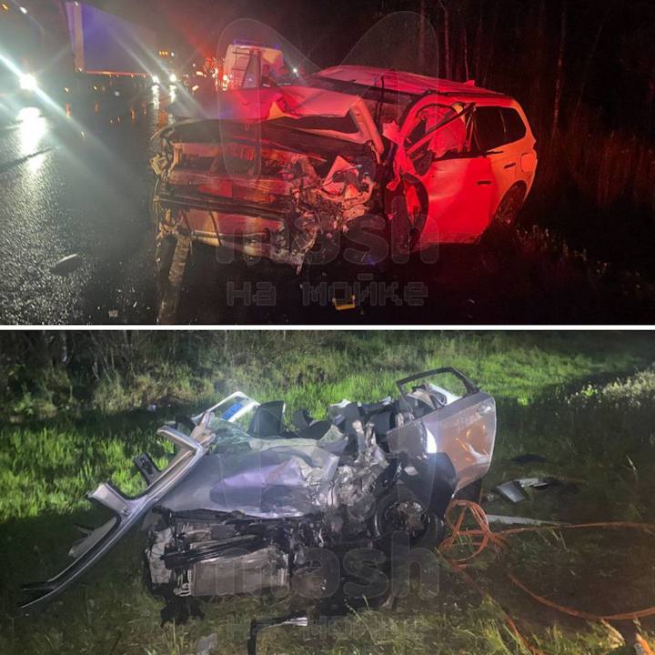 Mitsubishi сбил лося и сразу после столкновения влетел в Volkswagen на встречной полосе трассы "Кола" в Волховском районе ЛО. Водитель второй легковушки погиб, ещё четверо пострадали — двое из них дети на пассажирских местах.