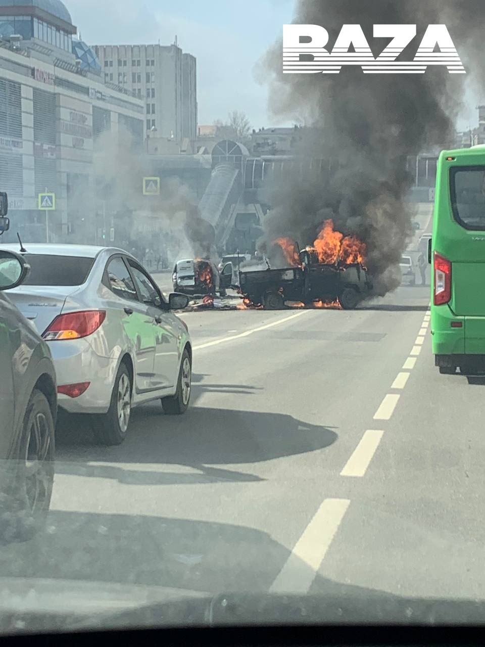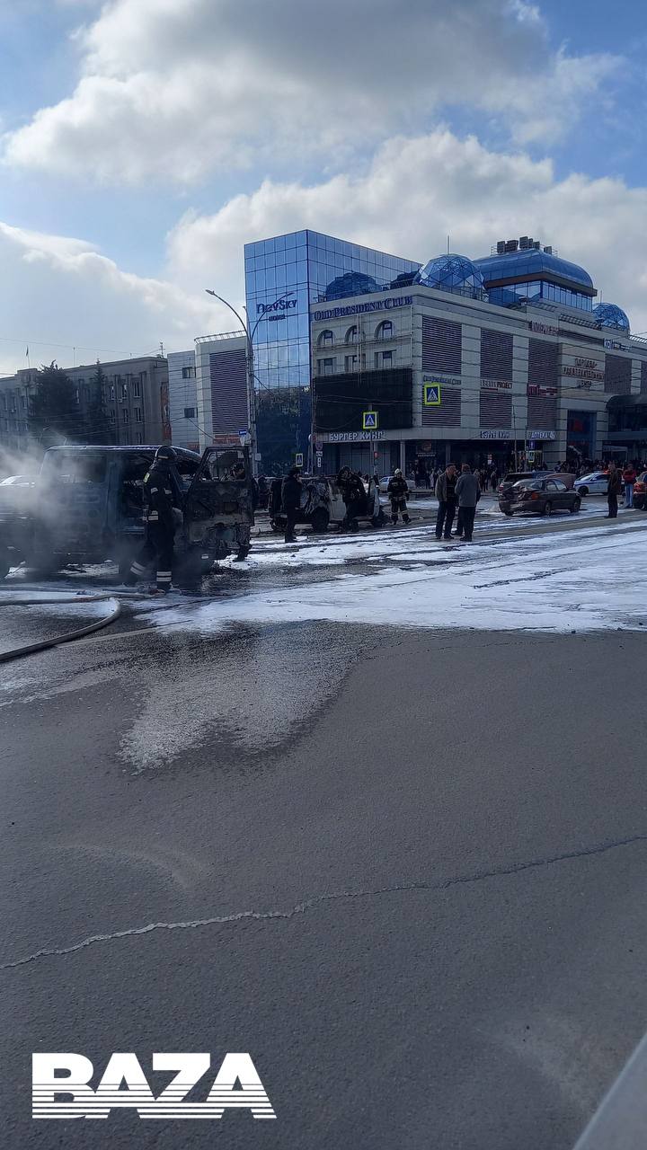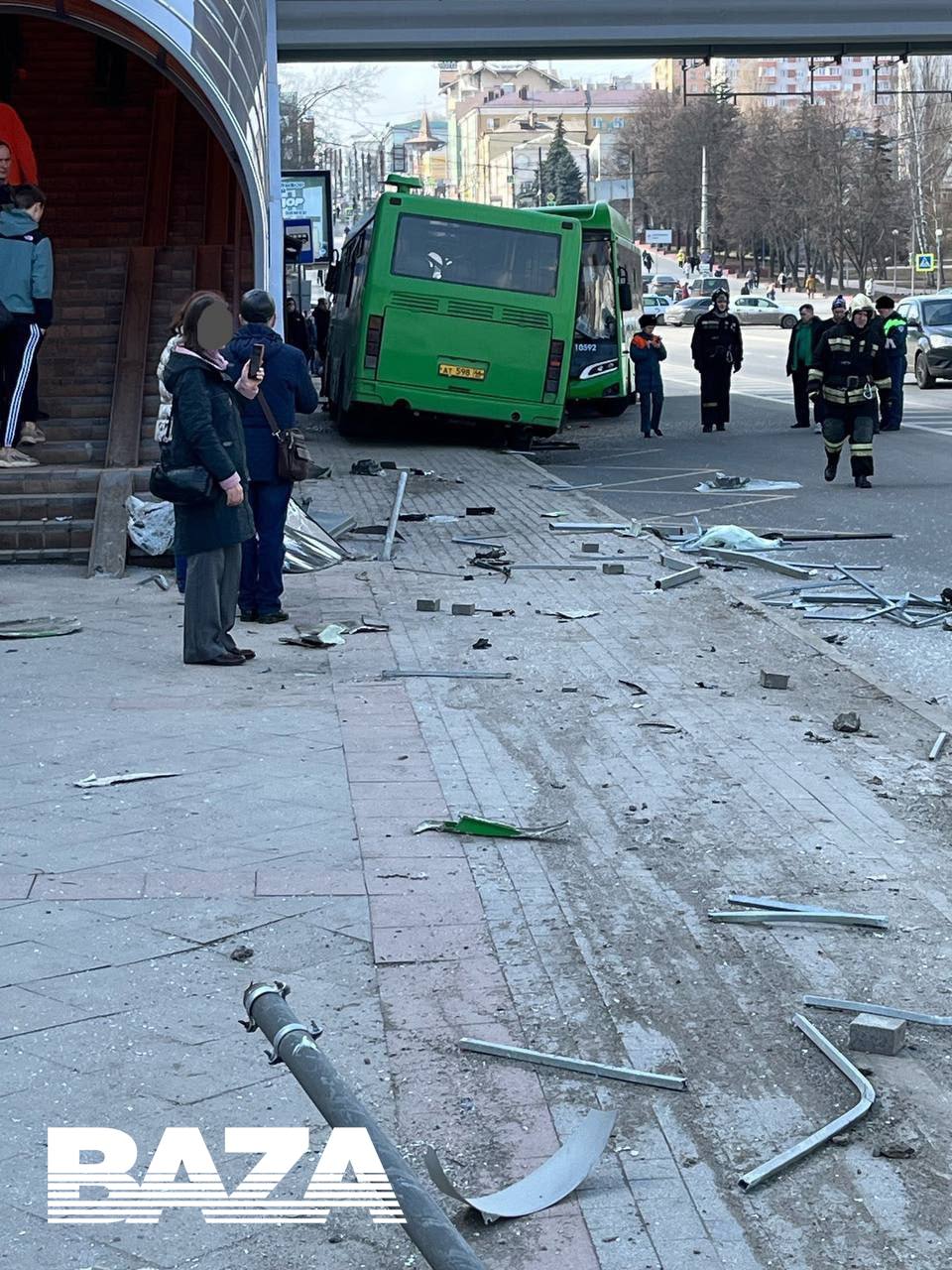 Автобус протаранил несколько машин и врезался в другой автобус в центре Курска. От удара в одном из автомобилей взорвался газовый баллон.