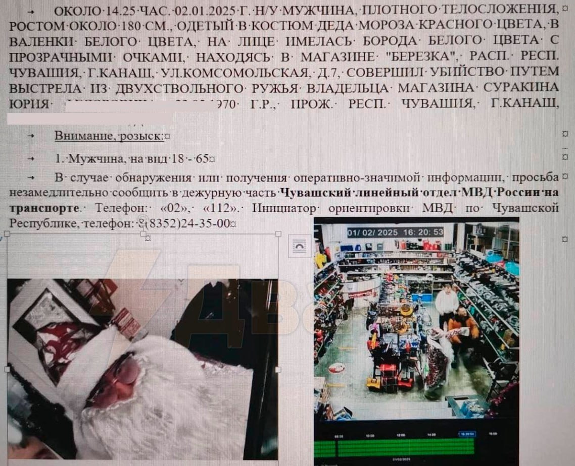 В Чувашии преступник в костюме деда Мороза зашел в магазин, сделал совместную фотографию с хозяином торговой точки и затем... застрелили его.