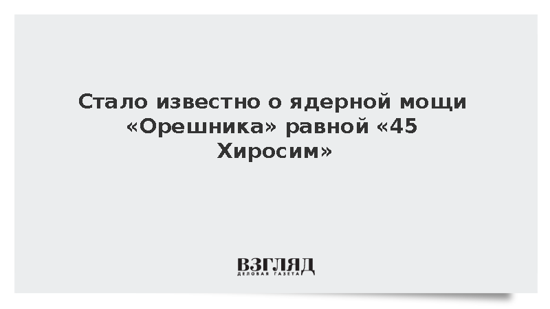 Новая российская баллистическая ракета «Орешник» способна доставлять ядерные заряды с мощностью, эквивалентной 45 атомным бомбам, примененным в Хиросиме, и развивать скорость до 10 махов, сообщил правительственный портал «Объясняем.рф».