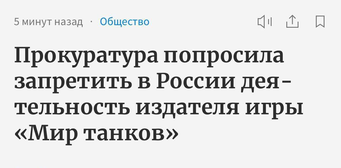 «Мир Танков», кажется, В С Е. Генпрокуратура требует остановка деятельности компании на территории России.