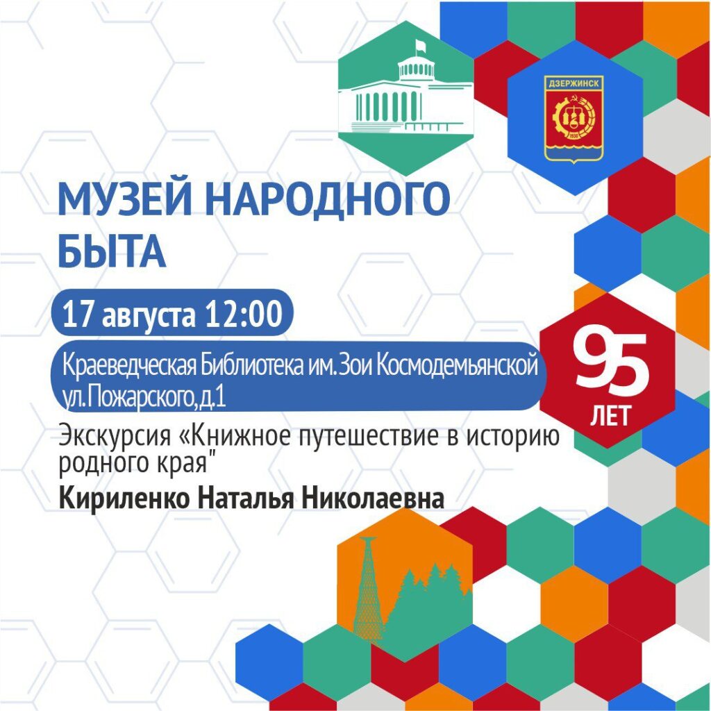 В ближайшее воскресенье, 17 августа, в Дзержинске пройдет бесплатная экскурсия под названием "Книжное путешествие в историю родного края". Мероприятие организовано в рамках городского проекта "Выходи гулять.".