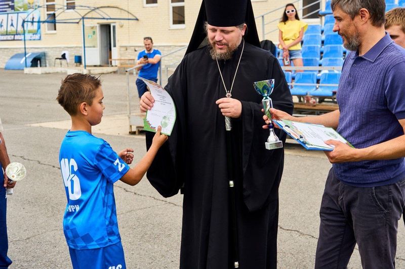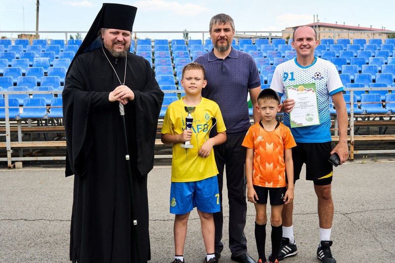 В субботу, 5 июля на стадионе «Кристал» состоялся ежегодный турнир на кубок Сызранской епархии. Впервые в нем приняли участие бойцы СВО, а также, традиционно, команда Октябрьского благочиния, казаки и сборная Казанского кафедрального собора. Соответственно, команды назывались «Путь героя», «Команда Дениса» («команда Д»), «Казаки» и «Собор». Футболистов благословил на игру Владыка Антоний. Напомним, впервые Кубок Сызранской епархии состоялся в год празднования 150-летия Казанского собора, 26 июня 2022 года. Тогда первое место заняли октябрьцы. Теперь же, на первом месте оказались ветераны военной спецоперации; на втором - футбольная команда «Казаки», третье место заняла команда «Д» Октябрьского благочиния.