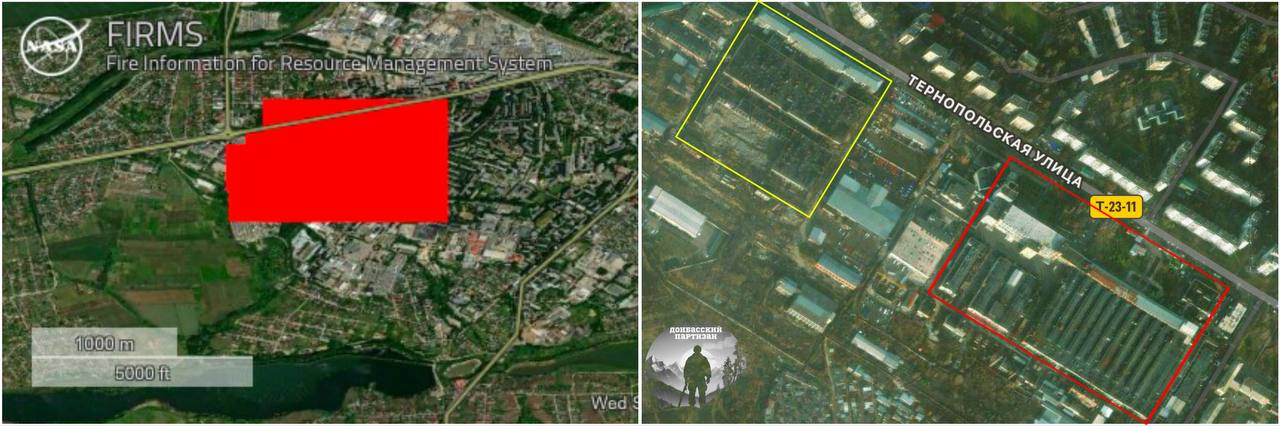 Завод «Катион» находится буквально по соседству — адрес Тернопольская, 19 подтверждён корпоративными справочниками. В условиях пространственного разрешения VIIRS (375 м) один «горячий пиксель» способен охватить и часть площадки «Новатора», и часть площадки «Катиона», создавая визуальную иллюзию «общего очага» на спутниковом слое. Именно это — вместе с эффектом зеркального ретеллинга в соцмедиа — порождает упоминания «Катиона» в оперативных лентах. При этом, согласно оперативной информации, на текущий момент попаданий по «Катиону» не зафиксировано — предприятие продолжает фигурировать в инфополе из-за географического соседства собственного промышленного профиля.