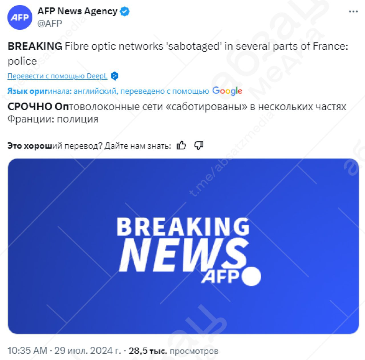 При этом телеканал BFMTV отмечает, что пока следователи не могут подтвердить участие этого человека в серии диверсий в день открытия Олимпиады.