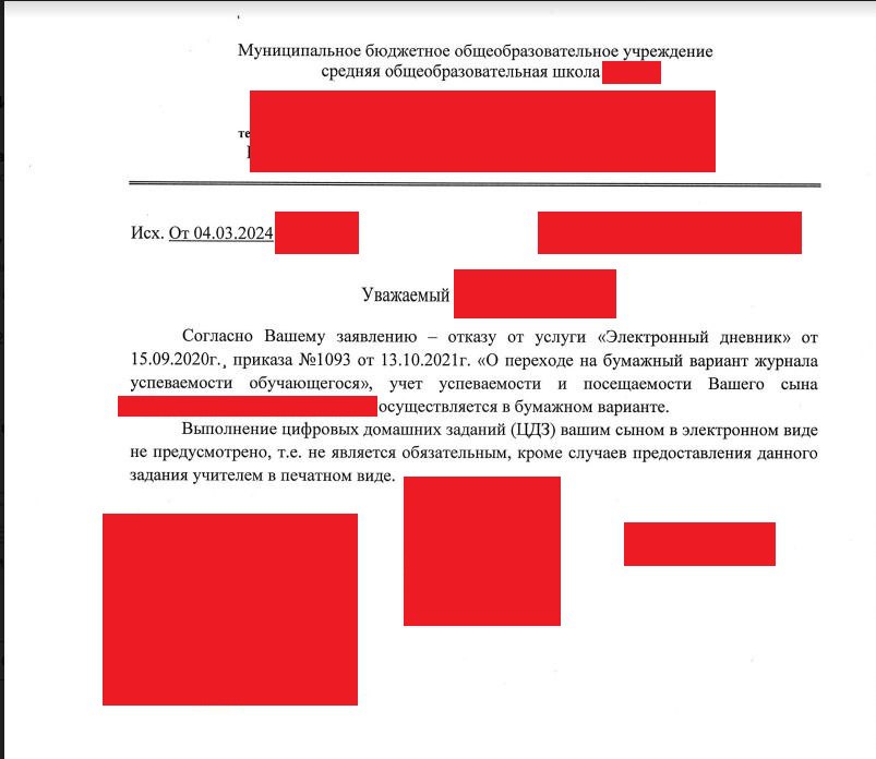 Минутка хороших новостей. Родитель-соратник ОУЗС из Московской области, используя наши инструкции отказа от АОПД, добился полной отмены ведения ЭЖД и перешел на учет успеваемости своего ребенка в традиционной, бумажной форме.