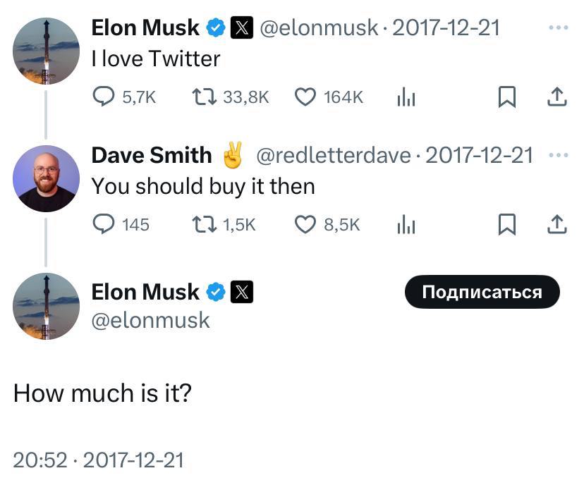 Такой же вопрос бизнесмен задавал за пять лет до приобретения Х (скрин 2).