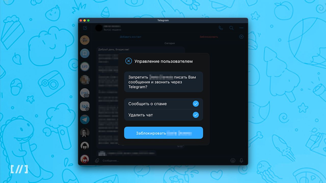 Сегодня в мессенджере есть возможность при добавлении неизвестного человека в чёрный список проставлять отметку о спаме. Для этого следует нажать кнопку «Заблокировать» в верхней плашке и указать «Это спам».