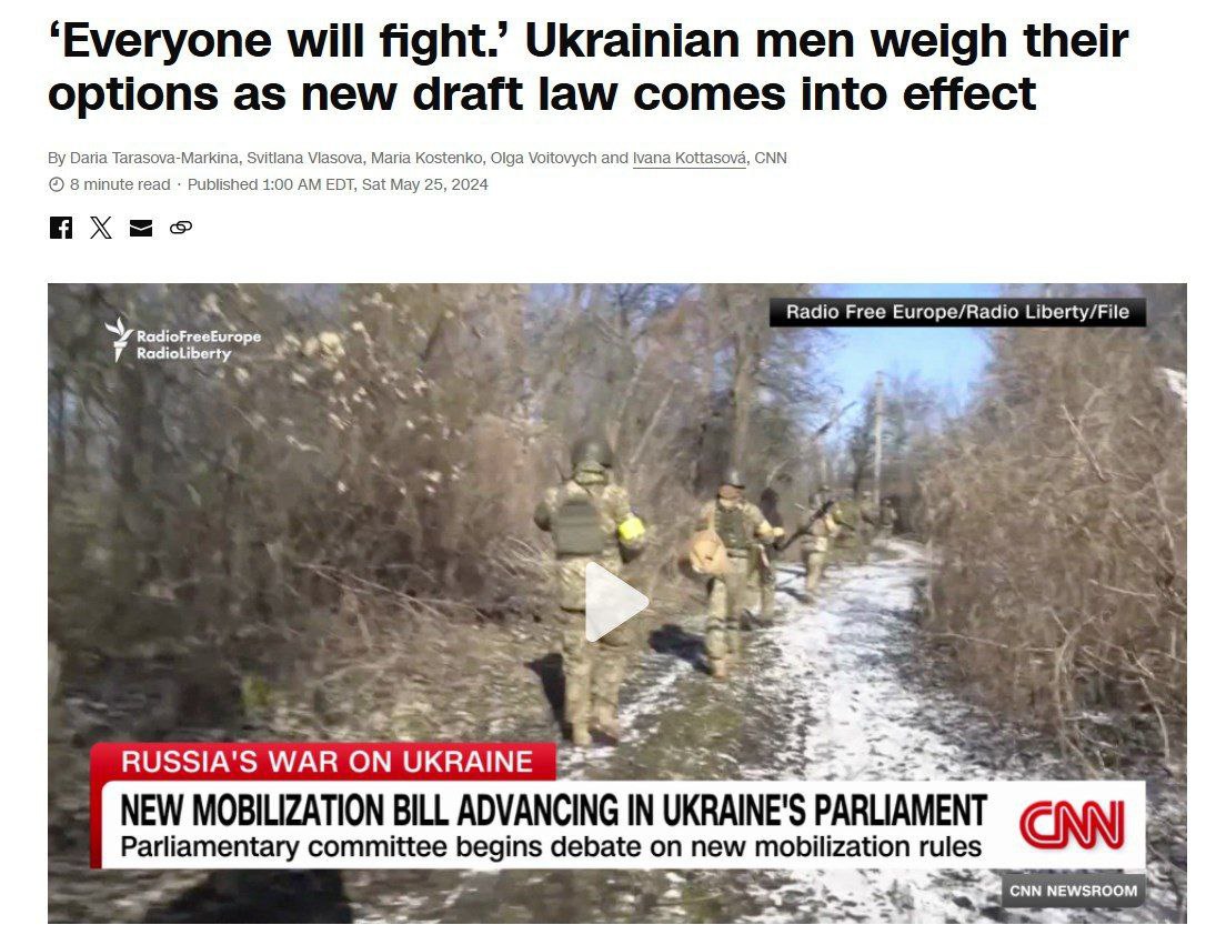 Об этом пишет CNN, анализируя усиление мобилизации в Украине. Статья называется "Все будут воевать".