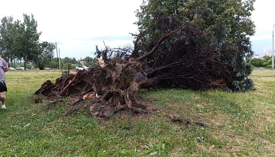 "Во время дождя растение намокает и увеличивает свой вес. Если крона большая, то она обладает повышенной парусностью. В результате при резком усилении ветра, даже кратковременном, возможно падение деревьев, надлом части ствола и веток", — объяснили представители Комблага.