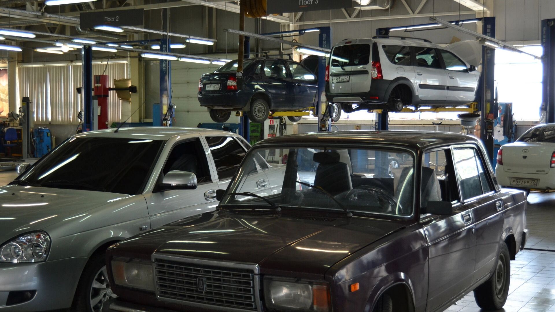 На этот раз гость из дикой природы был замечен у местного автосервиса. Очевидцы заметили, как медведь решил «поиграть в прятки» на парковке.
