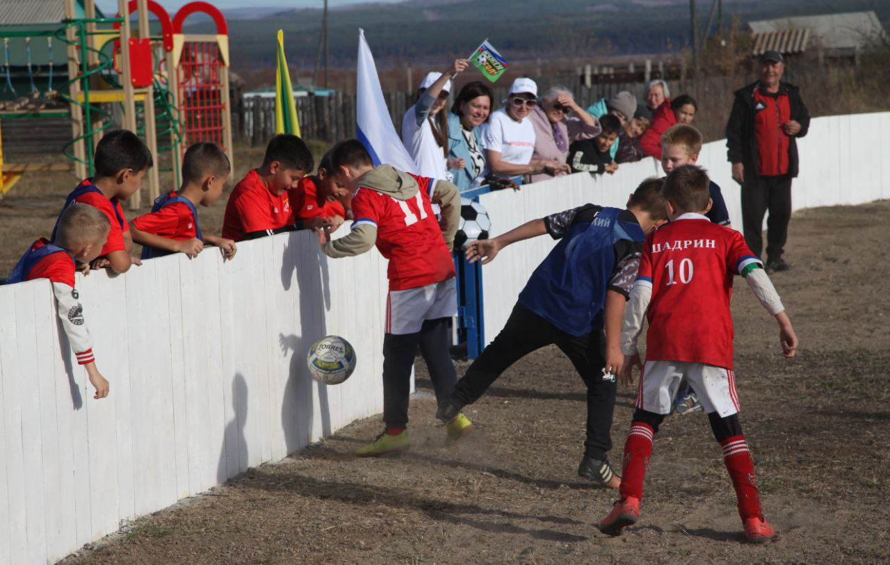 Футбольное поле построили жители сельского поселения «Ингодинское». Они подали заявку в волонтерский проект от «Газпромнефть-АЭРО» и получили финансирование.