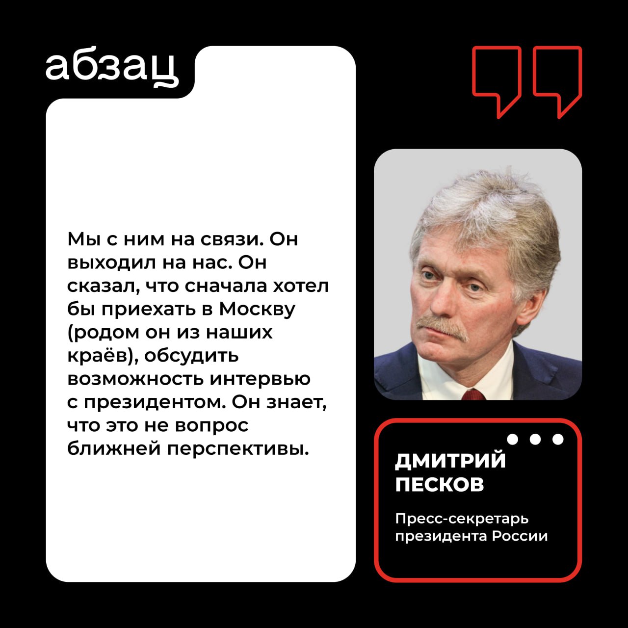 ❗️Лекс Фридман выходил на Москву по поводу возможного интервью с Путиным – Песков