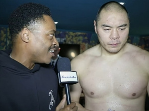 После яркой победы над бывшим "временным" чемпионом мира по версии WBO в супертяжёлом весе (свыше 90,7 кг) британцем Джо Джойсом (15-2, 14 КО) его нынешний обладатель китаец Чжан Чжилеи (26-1-1, 21 КО) дал интервью в раздевалке популярному YouTube-каналу о боксе.