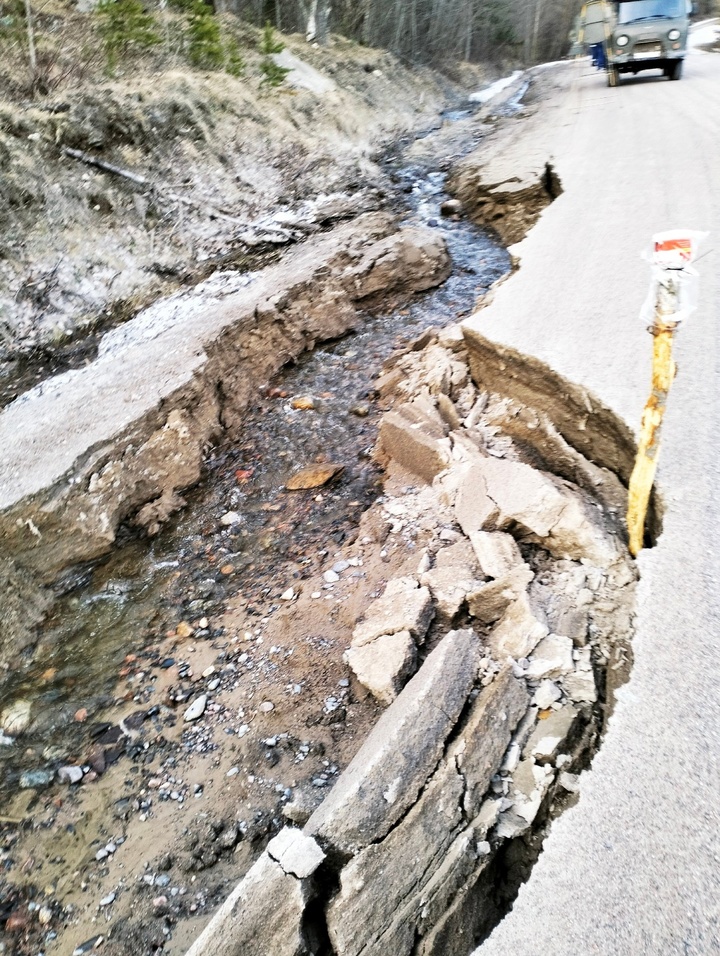 Представители ГИБДД уверяют, что подобные обрушения происходят ежегодно из-за половодья, вызванного таянием снега и льда. На этот раз дорога разрушилась даже не так сильно, как это было в предыдущие годы.