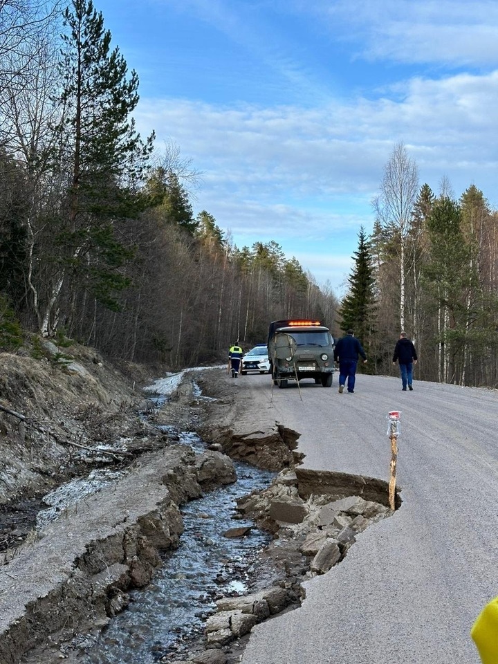 Как сообщили в администрации Лахденпохского района, 11 апреля на дороге Куркиеки – Терву в Лахденпохском районе, в пяти километрах от поселка Куркиеки, ушла под землю часть дороги.