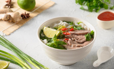 Обычно ставят бутылочки с приправами: рисовый уксус с чесноком, соус чили тыонг от, рыбный соус ныок мам, а также тарелку с дольками лайма. С их помощью можно регулировать вкус супа. Но будьте осторожны с соком лайма, чтобы суп не стал слишком кислым.