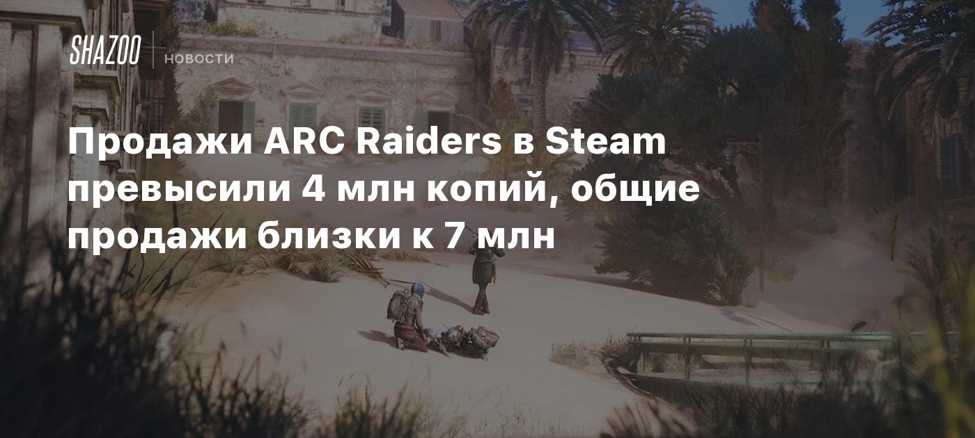 Общее количество проданных копий ARC Raiders в Steam достигло 4 миллионов, что принесло 130 млн долларов. Игра стремительно приближается к отметке в 7 миллионов продаж на всех платформах, что подтверждает успешный старт проекта от студии Embark.