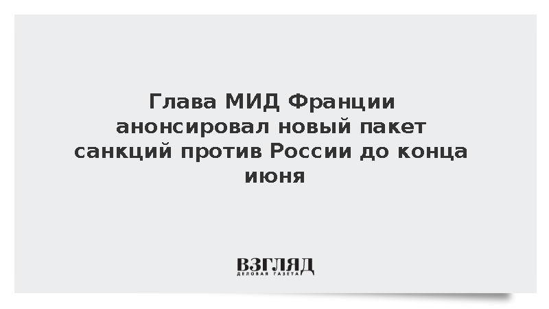Еврокомиссия может представить новый пакет антироссийских санкций до конца июня, сообщил глава МИД Франции Жан-Ноэль Барро.