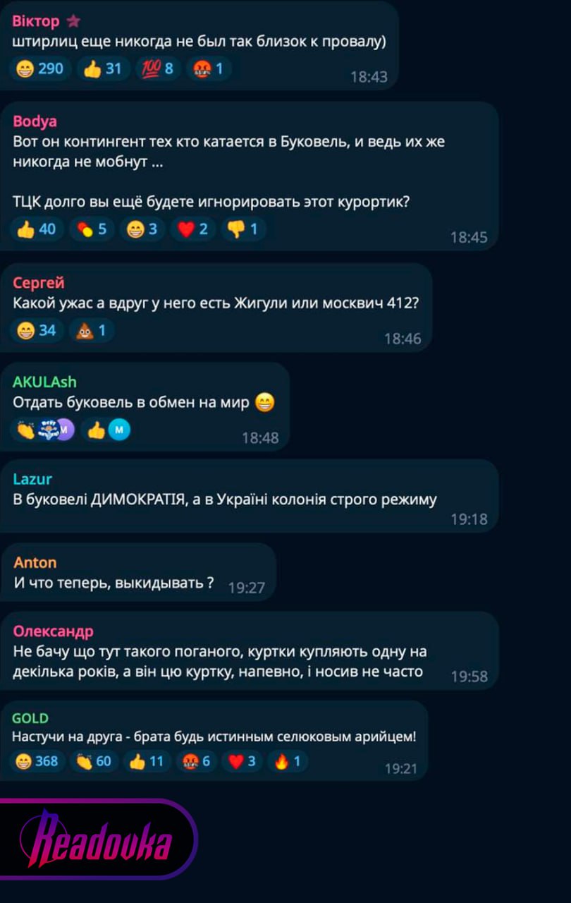Особо агрессивные комментаторы посоветовали и вовсе проверить весь курорт — по их словам, туда катается богатый контингент, который ТЦК стоило бы мобилизовать. Судьба отдыхающего в злополучной куртке неизвестна.