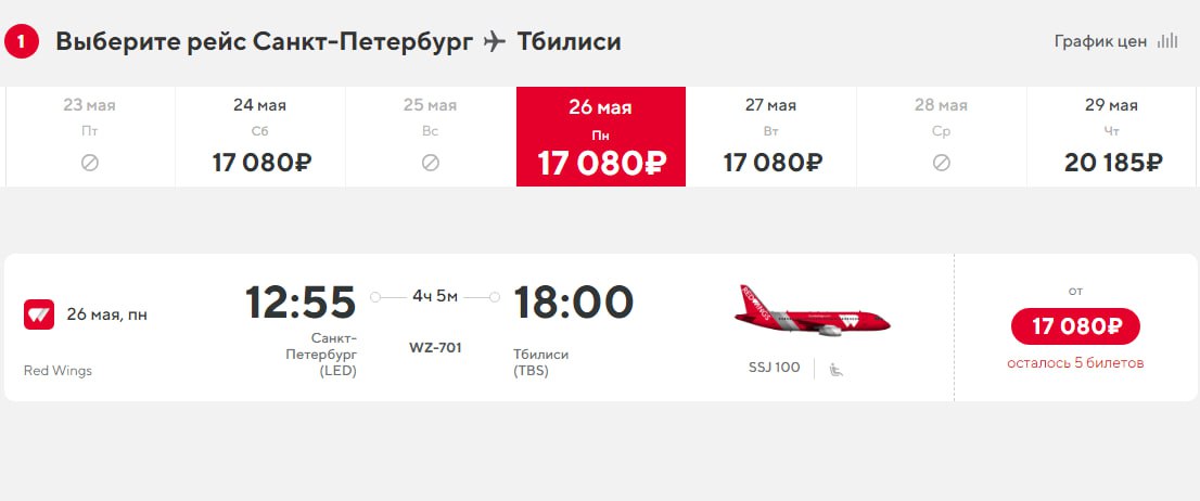 ✈️ 🇬🇪 Red Wings открыла продажу билетов из Петербурга в Тбилиси в летнем расписании