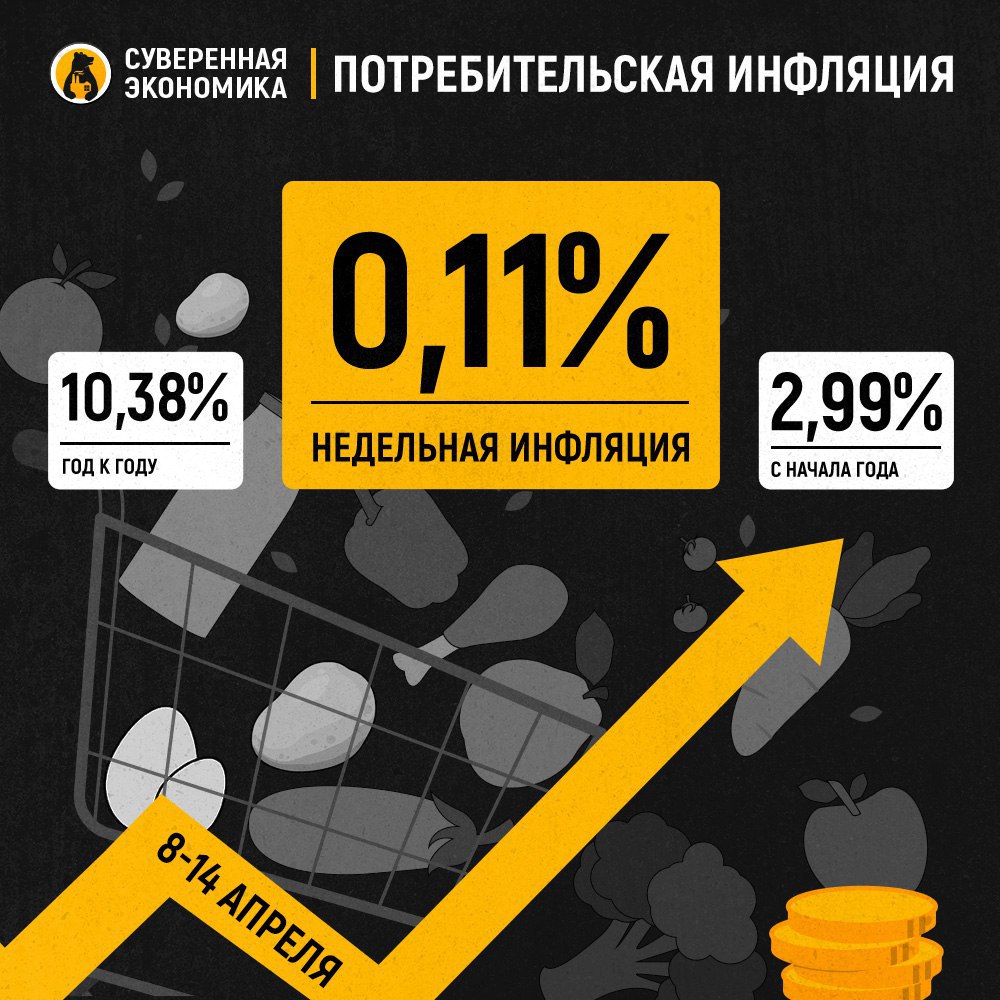 По данным Росстата, рост индекса потребительских цен (ИПЦ) с 8 по 14 апреля снизился до 0,11% против 0,16% на предыдущей неделе. Одним из драйверов традиционно стала плодоовощная продукция, прежде всего, картофель. Сильно дорожают и услуги, к примеру, проживание в отеле. Непродовольственные товары продолжают очень сильно тормозить укрепление рубля.