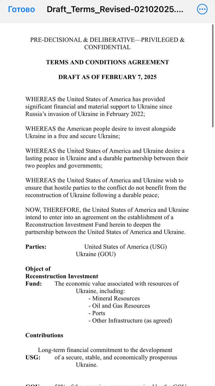 🇺🇦🇺🇸 Половина всех ресурсов – американцам. В Сети появился неофициальный проект соглашения США и Украины